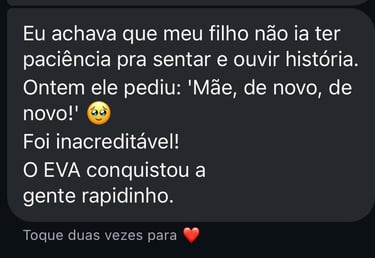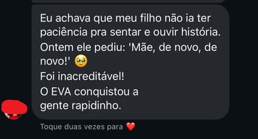Esse é justamente um dos pontos fortes do EVA. As histórias são curtas, divertidas e envolventes, e vêm acompanhadas de recursos extras como perguntas, missões e até um jogo. Isso prende a atenção da criança e transforma a leitura em brincadeira.