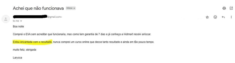 Você tem 7 dias para experimentar o Ritual EVA sem risco. Se por qualquer motivo achar que não é para você, basta solicitar o reembolso e devolveremos 100% do valor.